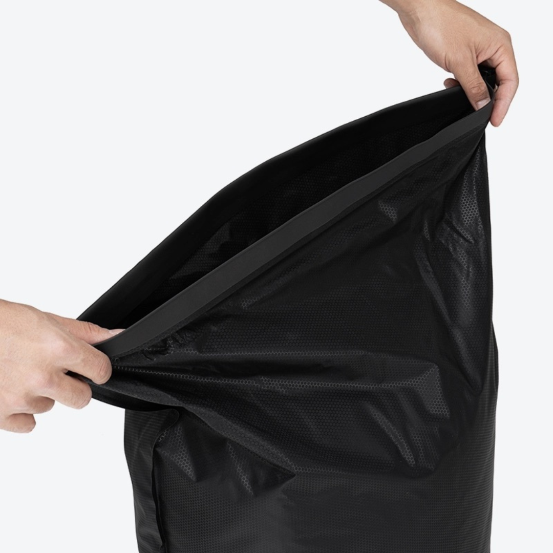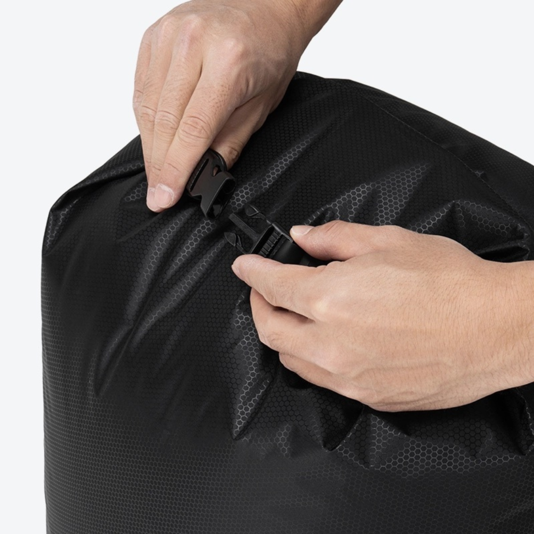 透過捲摺袋子頂部,搭配內建的單向氣閥,即可方便排出內部空氣減少體積。設計上延續輕量化的核心概念,選用輕量材質並可最小化收納體積,布料具備高度防水性,即使暴露在雨水或潮濕環境中,也能保持內容物的乾燥。