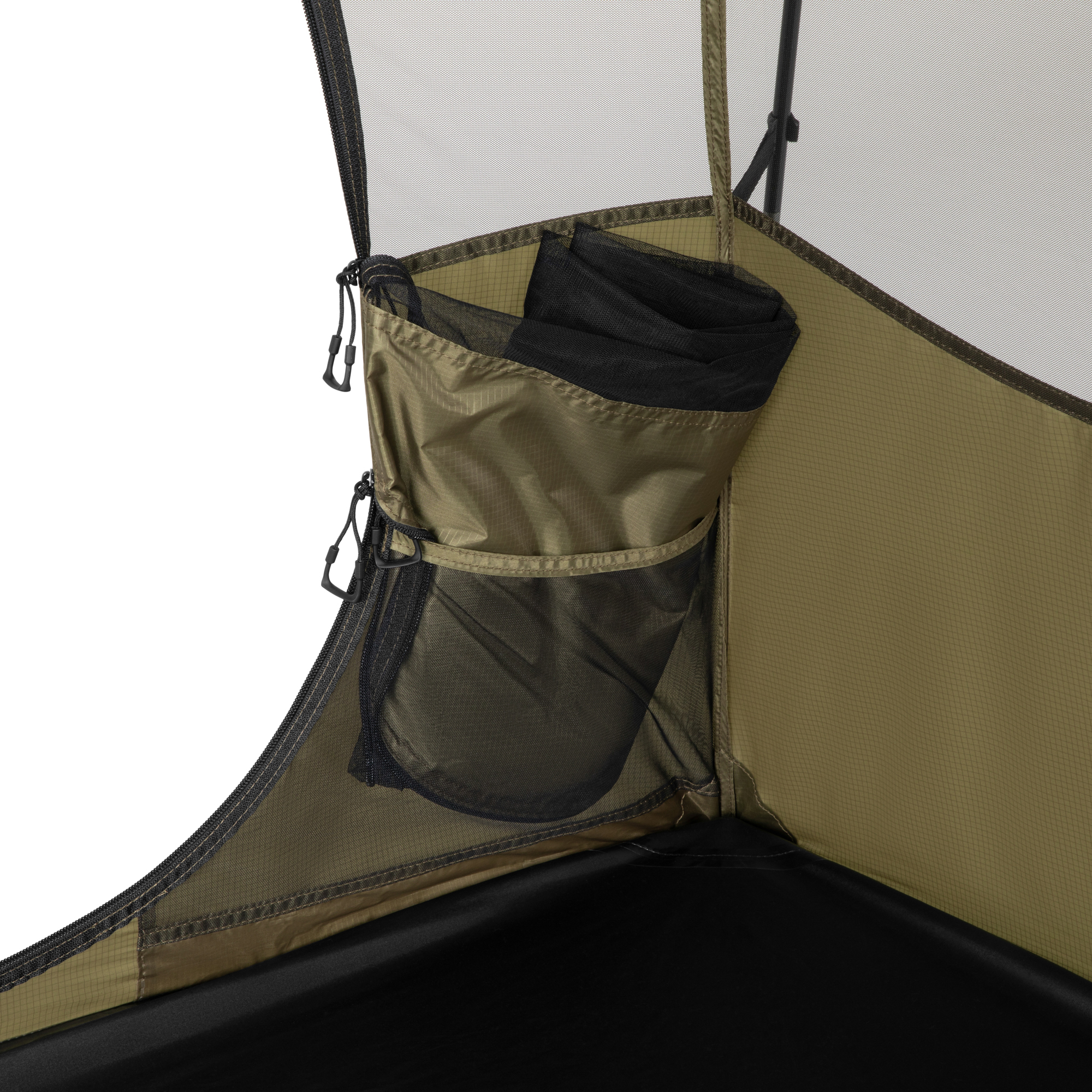 這是一款 191 cm 的單人紗網睡帳,前後兩個大的出入口,提供優秀的空間開放感,使進出更加方便。內帳的門採用雙面拉鍊,可以從內部或外部打開和關閉。出色的結構設計,安裝簡單,Jake's Foot 系統減少脫落風險、快速搭建。營柱連接處由特殊增強塑膠製成,商品收納尺寸小,便於攜帶出門,外有魔鬼氈可隨意打造專屬風格。