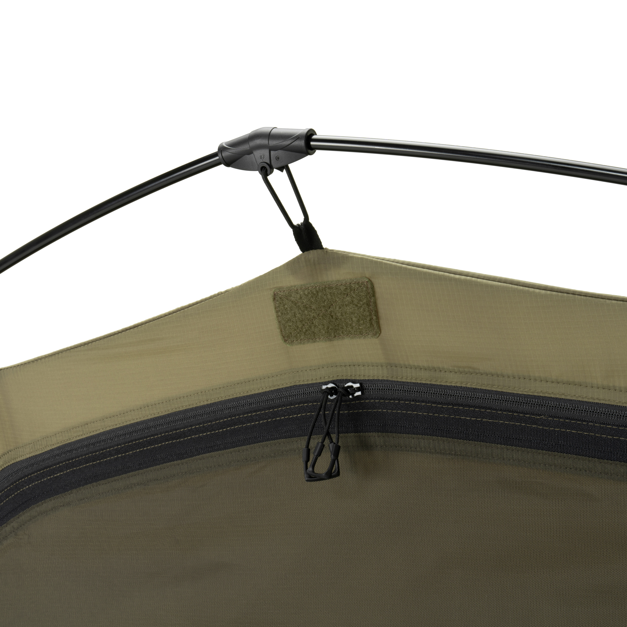 這是一款 191 cm 的單人布料內帳,適合用來釣魚、機車露營、汽車露營,門頂部有紗網和布料的雙重結構,可根據需求調整使用,前後兩個大的出入口,提供優秀的空間開放感,進出更加方便,內帳的門採用雙面拉鍊,內部擁有足夠坐姿直立的活動空間,其安裝簡單,Jake's Foot 系統減少脫落風險、快速搭建。營柱連接處由特殊增強塑膠製成。