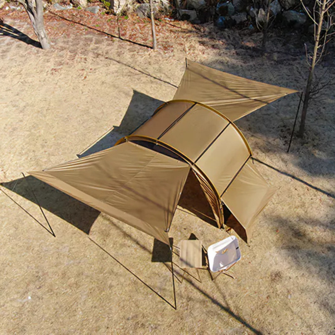 它結合了隧道帳的便利與圓頂帳的空間感,採用創新的 RC 結構設計,讓內部高度達到 190 cm,提供極致開闊且無壓迫的活動空間。全帳搭載頂級 DAC 鋁合金營柱 與專利 Airlift 導風系統,在輕量化的同時展現卓越的抗風穩定性。
