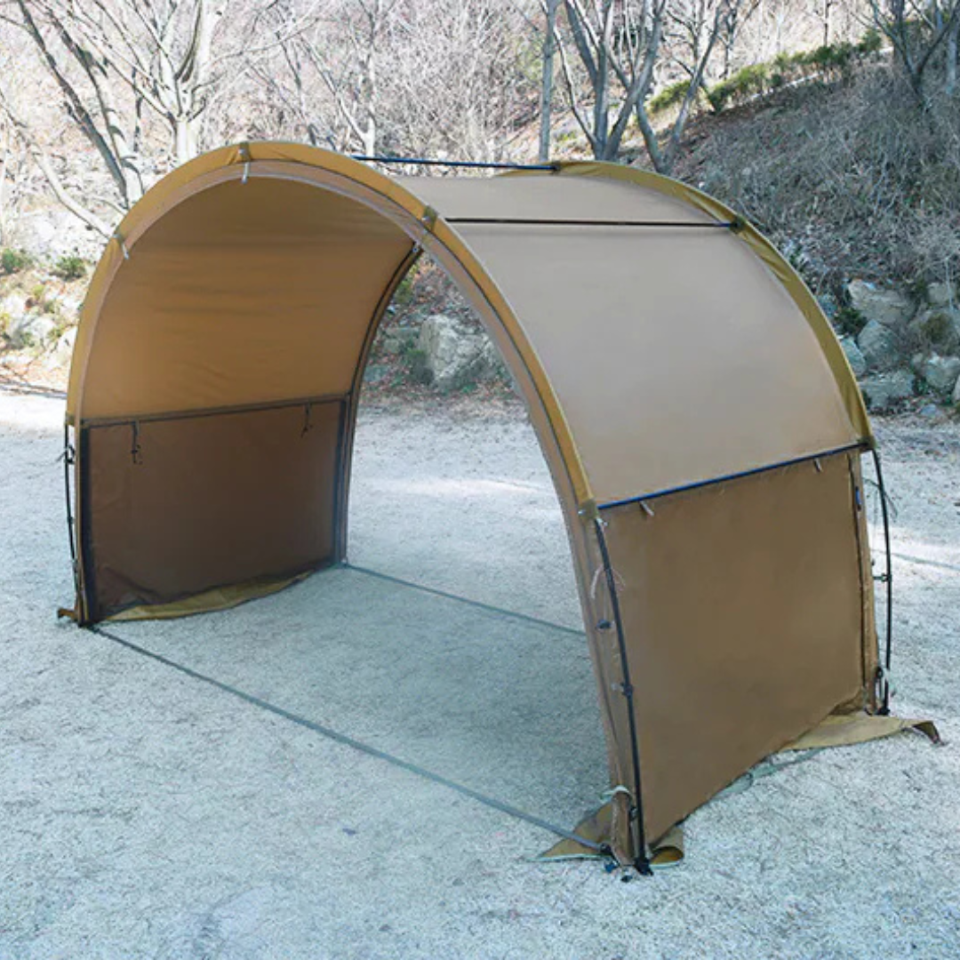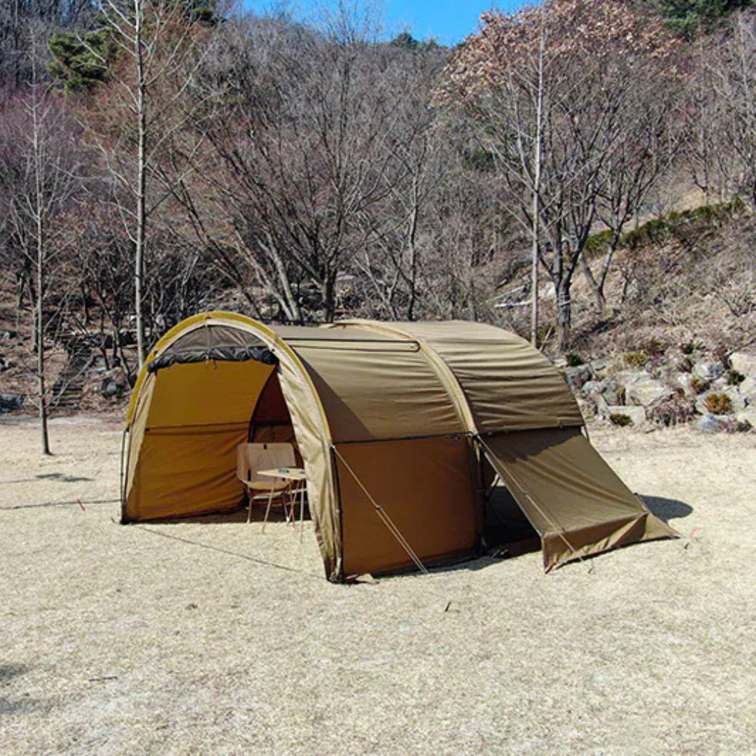 最迷人之處在於其「無限延伸」的靈活性:前後門片皆可拆卸,透過專用連接件,您可以自由串聯多頂帳篷,隨心打造專屬的戶外長廊或多功能基地。無論是追求極簡風格的單人露營,還是需要強大擴充性的團體集會,J.tunnel都是兼具科技美學與實用機能的頂級選擇。