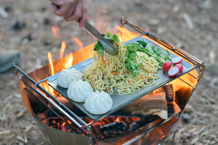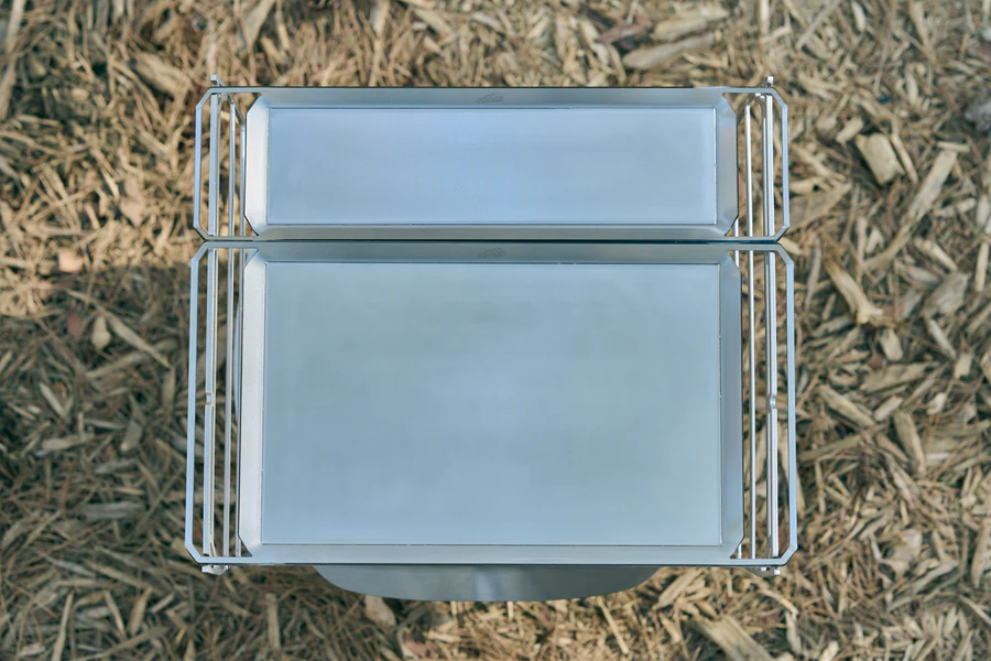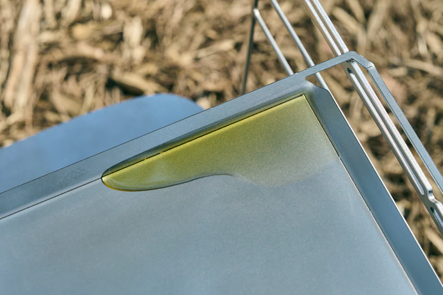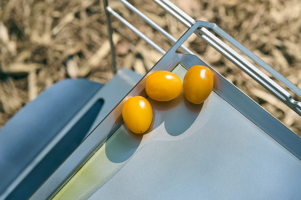 頂板採用衝壓工藝擠壓而成,可防止食物和液體滑落。3.2mm厚鐵板,具有良好的蓄熱性。料理鐵板完美適合 RAPCA 焚火台,結構簡單也可以與其他的焚火台和燒烤架一起使用。RAPCA 料理鐵板 (大) 是兩倍的料理鐵架大小,給燒烤區提供了更寬敞的烹飪空間,可同時烹飪多種食材。