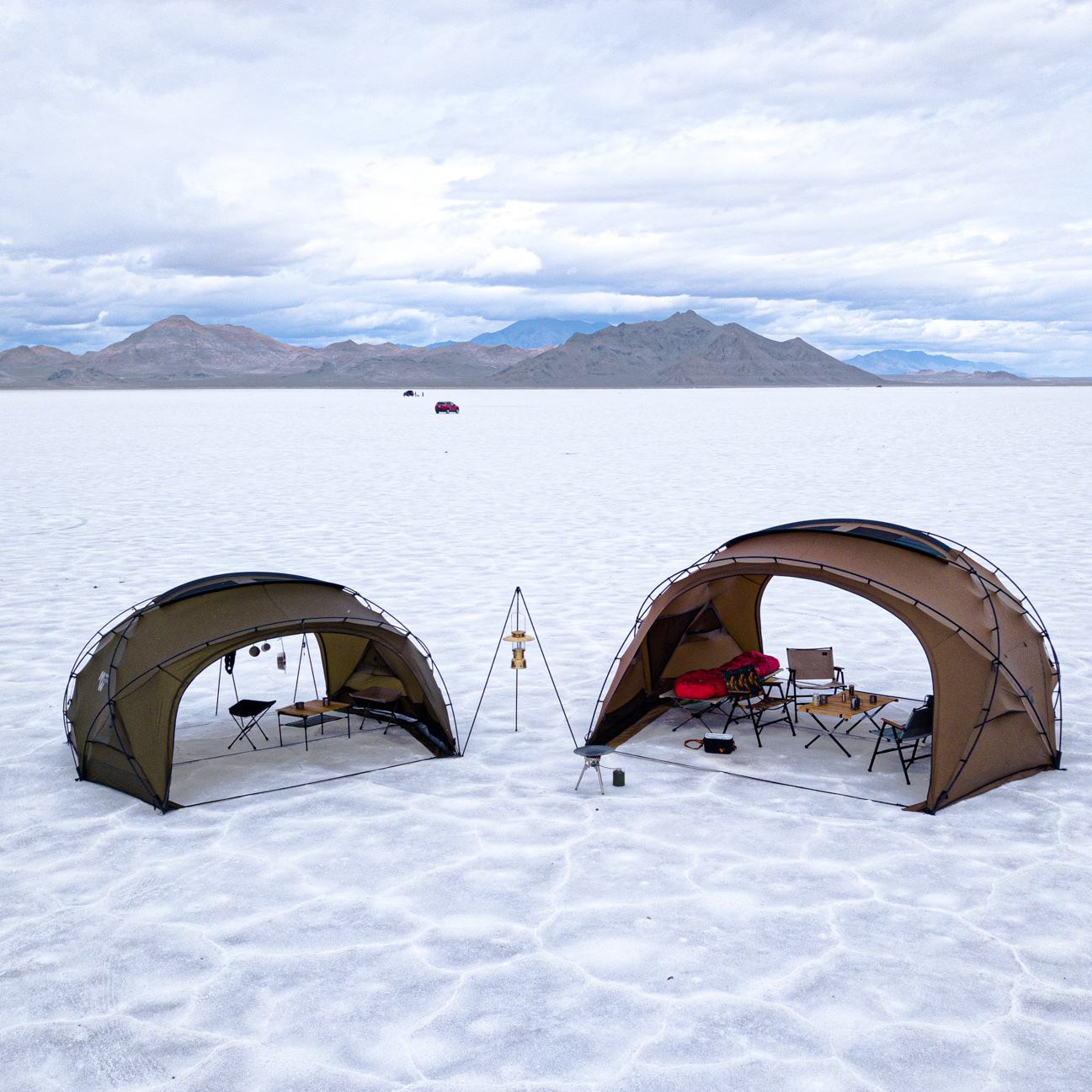 是能在戶外環境容納多人的多功能設備,帳篷的杆架結構採用雙十字桿結構設計,使用高耐度 Duralumin 硬鋁材料製成的兩個主桿和兩側桿結構,成為可獨立站立的自立帳型庇護帳,可輕鬆快速搭設完成,安裝非常方便,並且最大限度地提高了居住性和空間感。 TPU 環和網狀門可利用靈活應用於各種環境,TPU 的天窗屋頂設計,讓您在帳內,也能察看四季變化,欣賞日出日落光源變幻之美,雨天時有效阻斷雨水流入。在帳頂部使用了防染面料,可以避免帳布受到損傷,安裝後可將煙囪穿出插孔,冬季也可溫暖的享受露營。