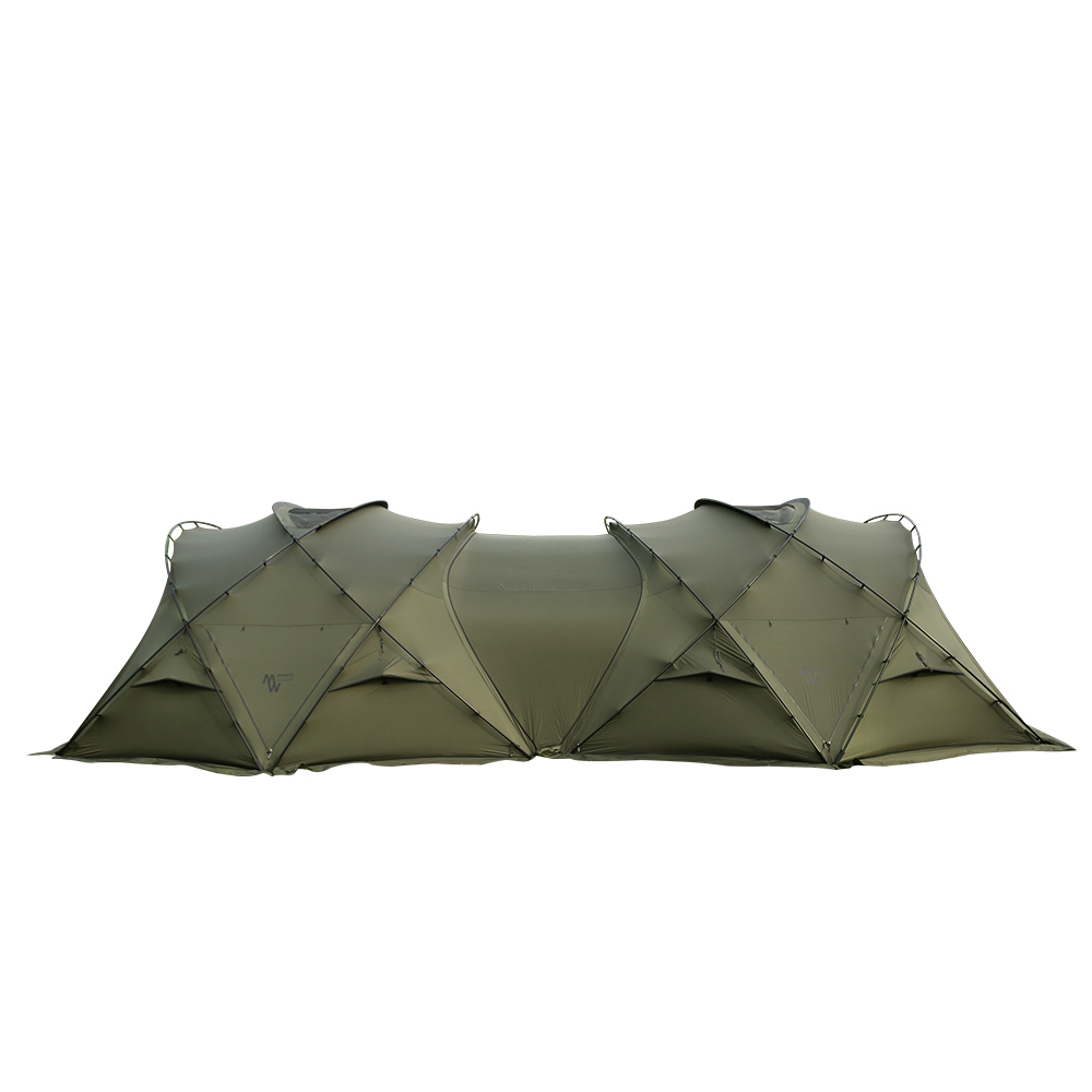 是專屬爲 Agora 製作的。 在兩頂帳篷之間通過連接,可以最大限度地提升 Agora 的「廣場」的意義。 利用此空間可以作爲多人圍坐的大型餐室或分離臥室和前室空間,利用連接布體驗寬敞的空間感吧!利用拉鍊+魔鬼氈+拉鍊覆蓋的三層結構可防止拉鍊間距鬆開,雨天時可以避免漏水,另外,利用連接布連接 2 個帳篷,下面是 9.5 x 4.6m 的大空間,可以更方便靈活利用於各種情況。