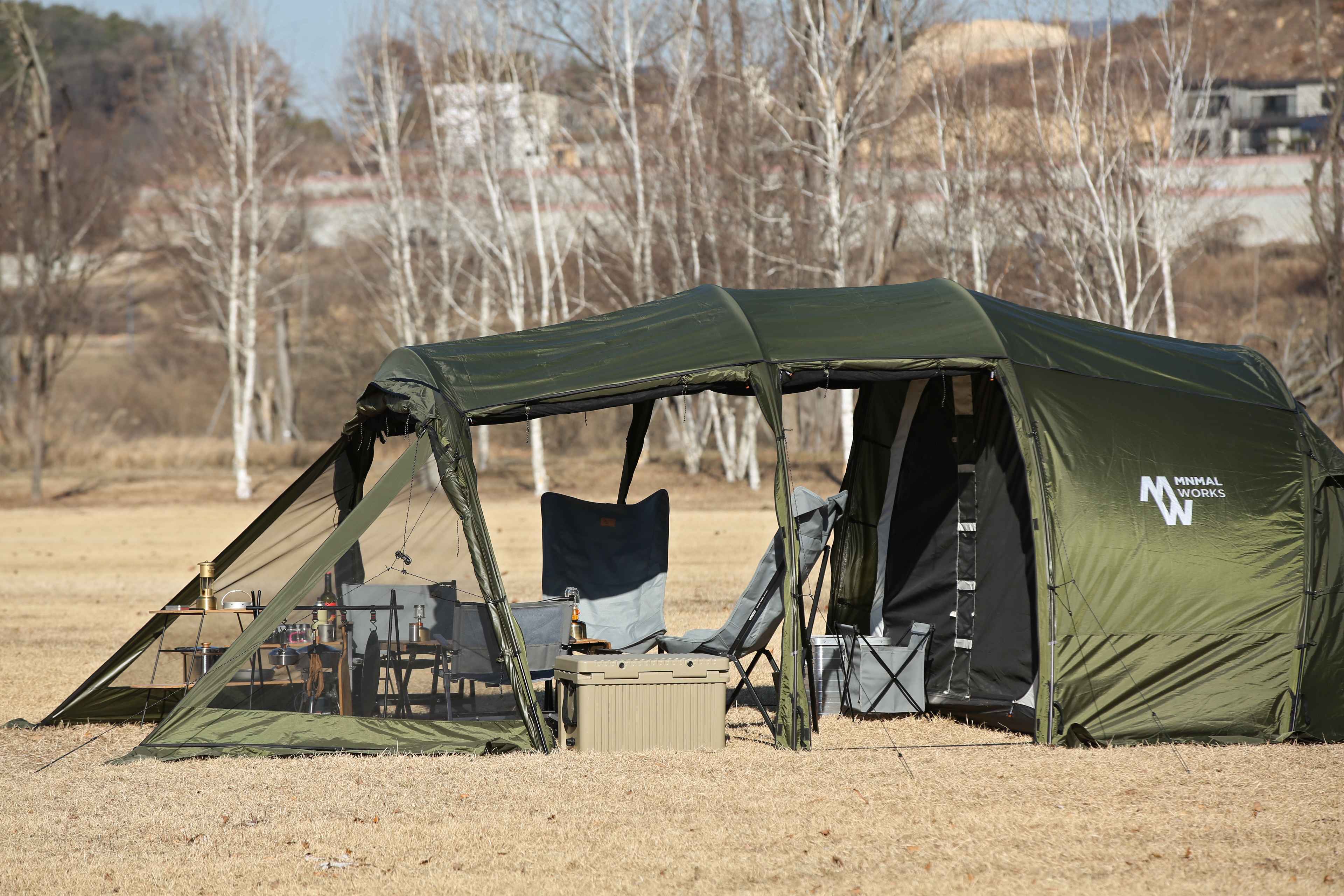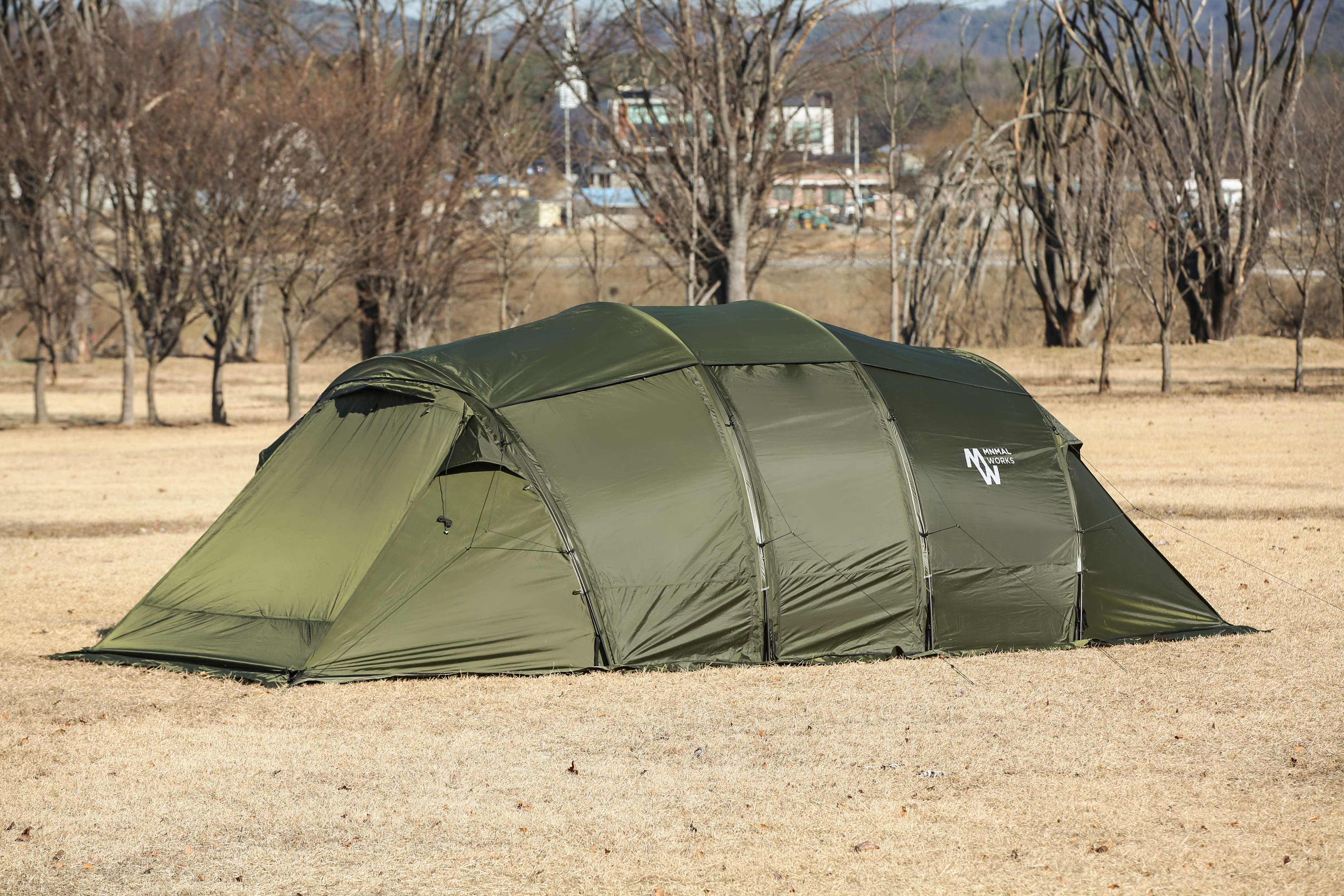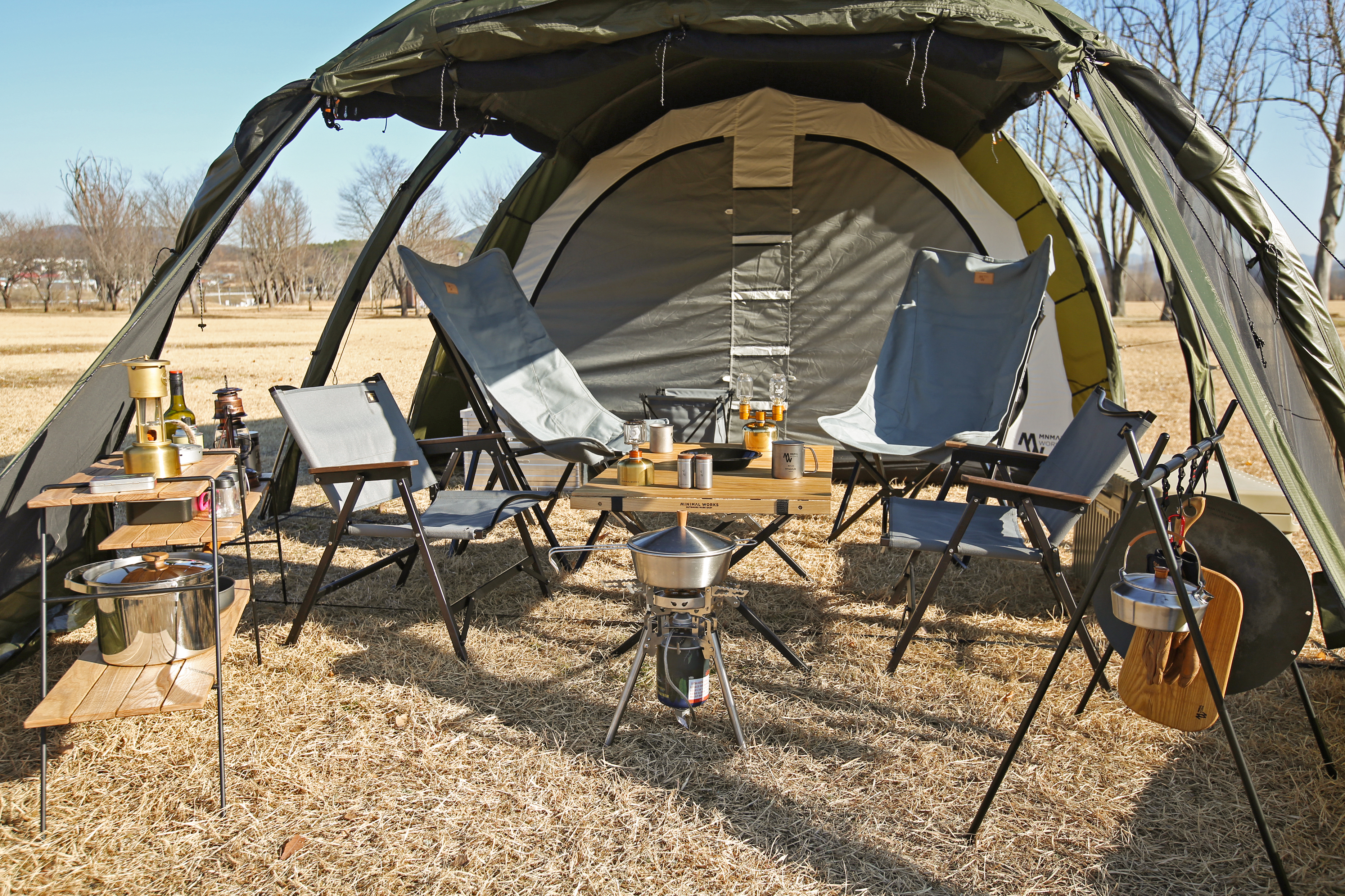 Albergue是一個隧道式的帳篷,提供了充足而悠閒的空間,空間利用率高。門片可以根據需要用作窗戶或門,夏天給人涼爽的開放感,冬天可以營造溫暖的空間。