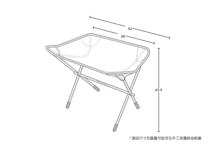 尺寸:使用時 L52xW38xH42.5cm|收納時 L33xW10cm