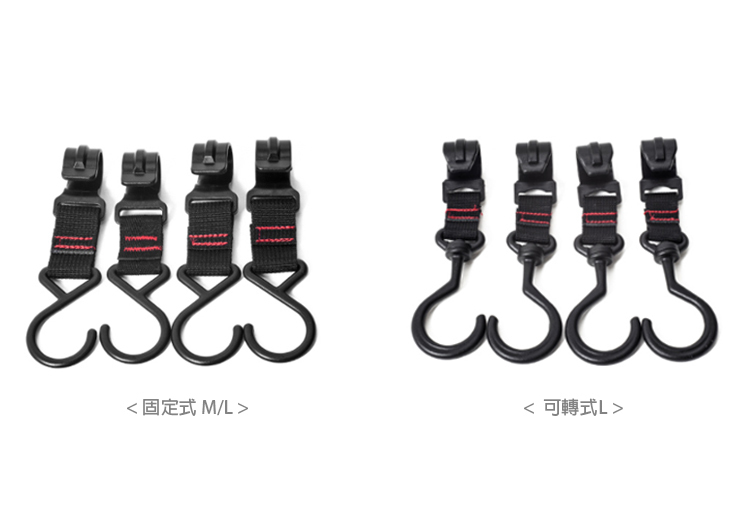 印地安A字掛架的專用掛鉤,協助您收掛各種小物品和裝備。掛鉤的設計,有兩種尺寸 M、L 可供選擇。