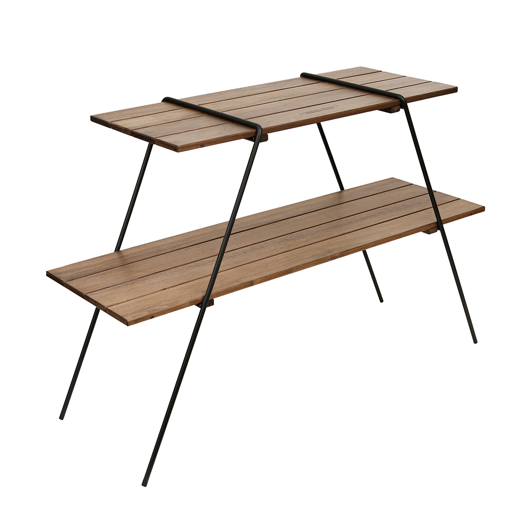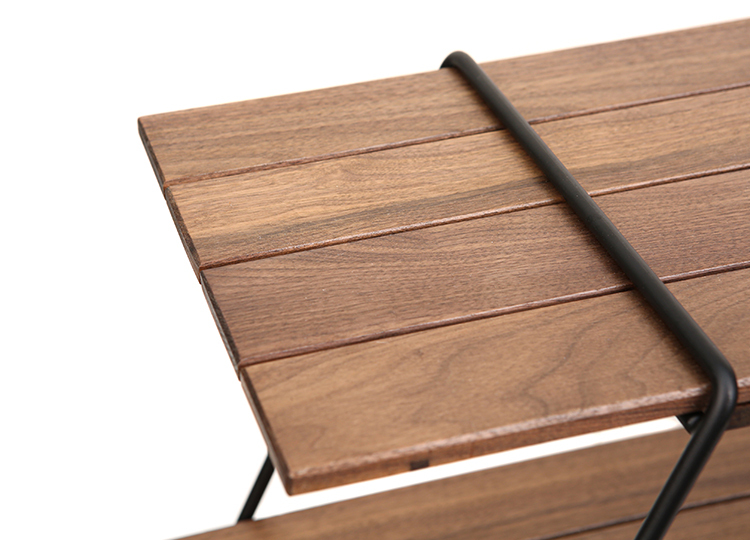 層架採用木質和黑色框架的簡潔設計,適合野營等戶外使用。高檔家具常使用的白蠟木,紋理美觀;而胡桃木抗潮、 耐磨,質地細密。