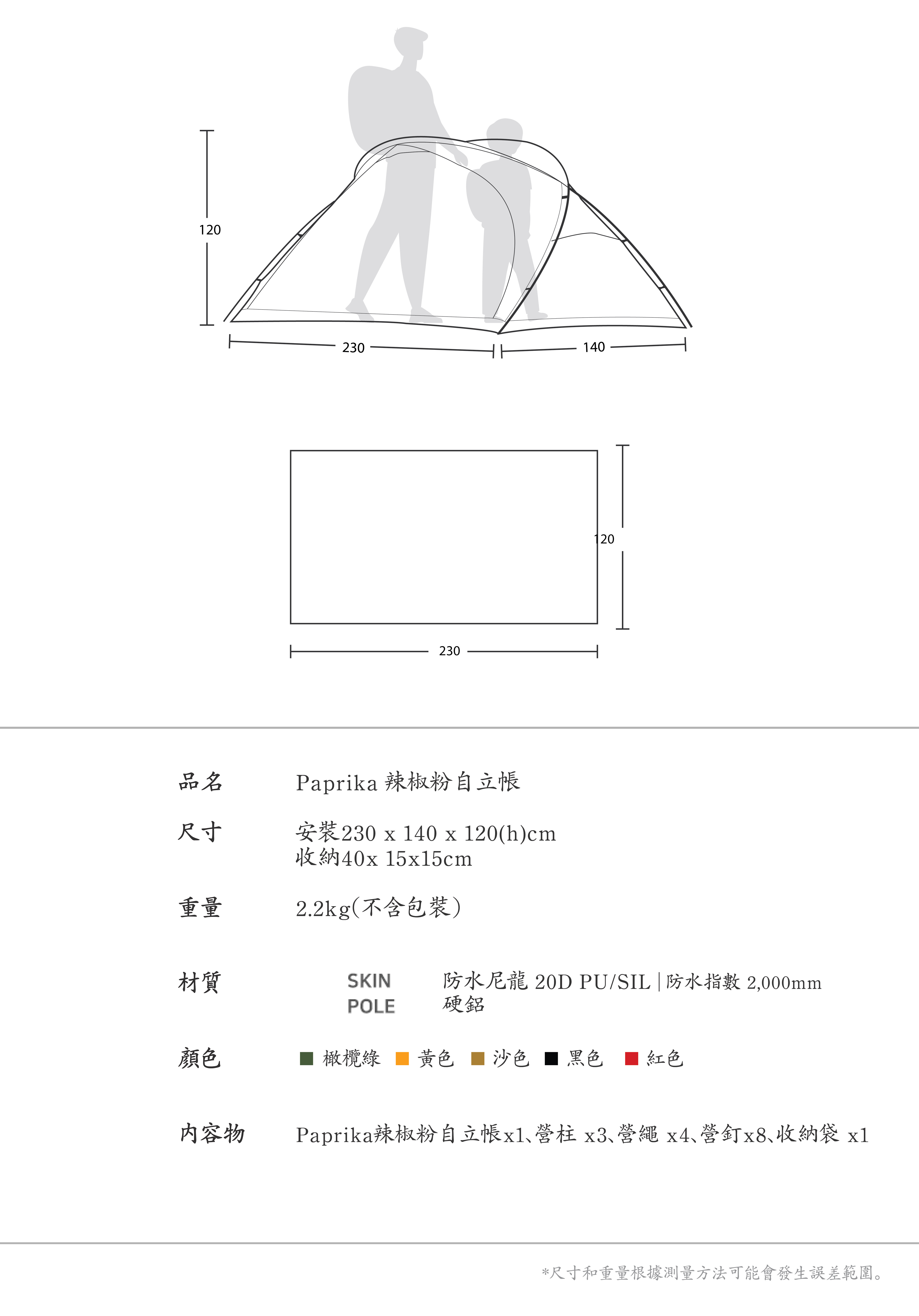 辣椒粉自立帳是一款輕巧的2人帳篷,