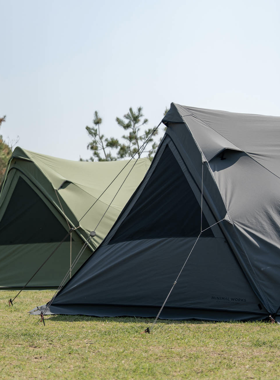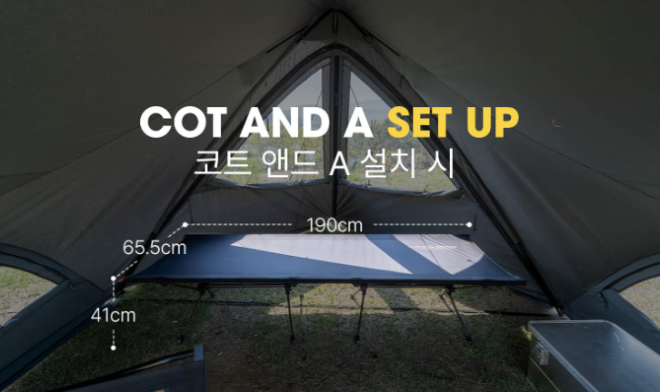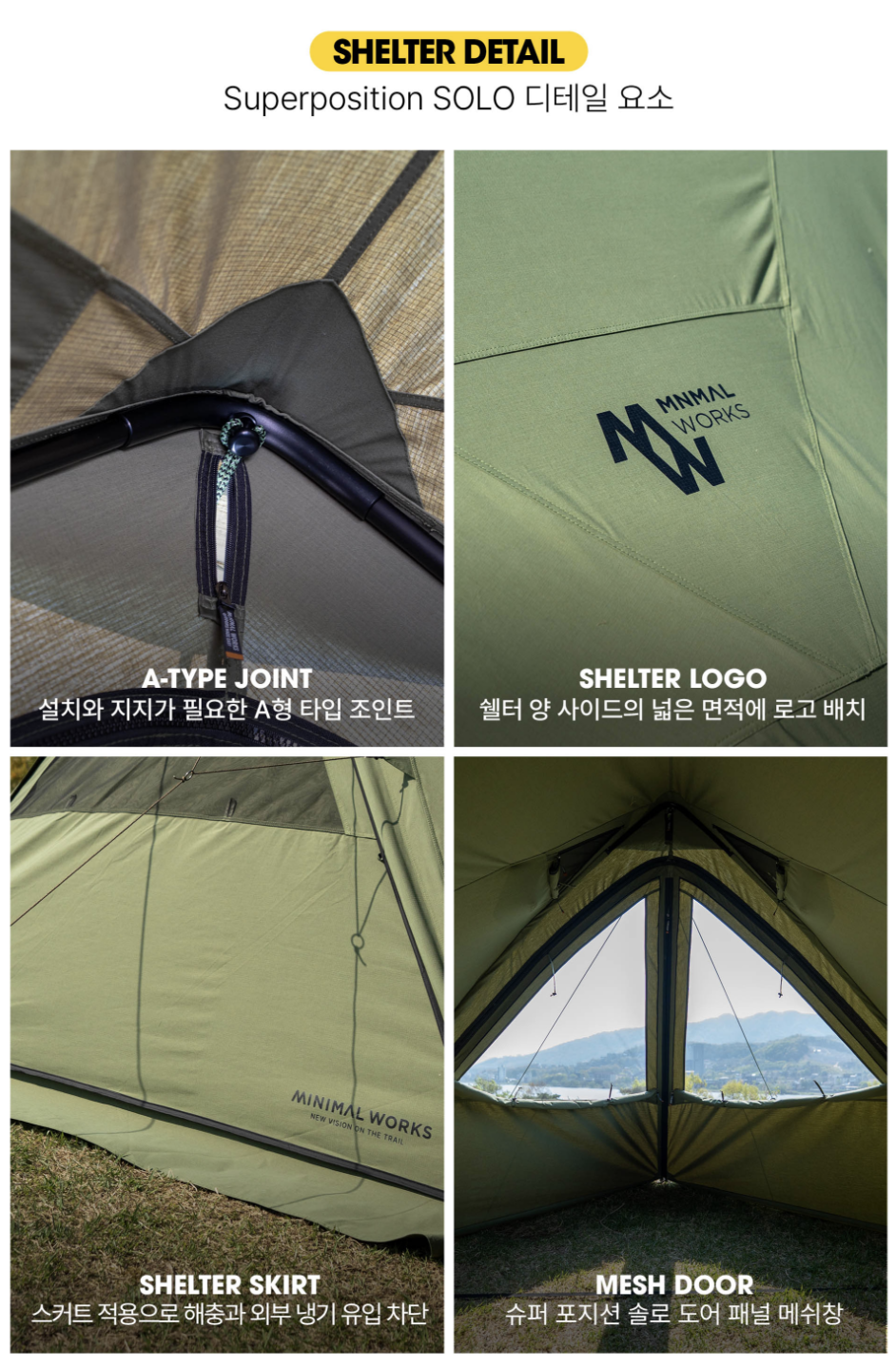 ”Superposition Solo“ 是多種可能狀態同時存在,具備天幕的開放感、又是舒適遮光的睡帳;外型是在 A 型主結構上增加側邊圓形支柱,是一頂空間利用性極佳的帳篷。