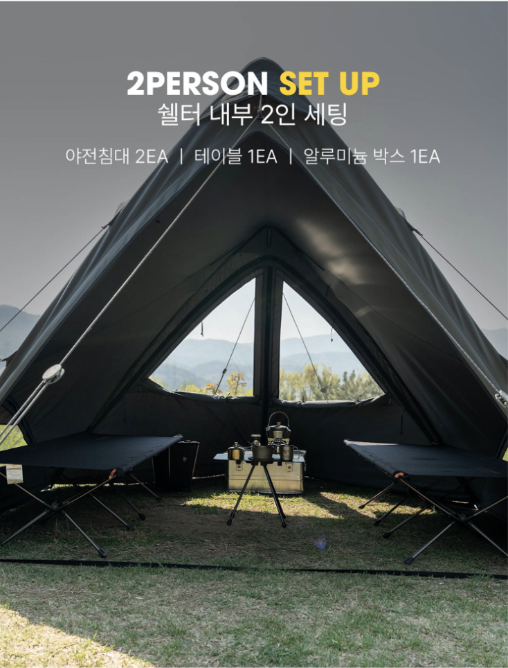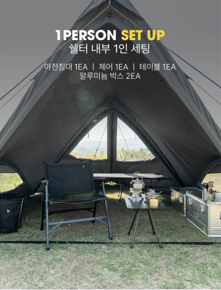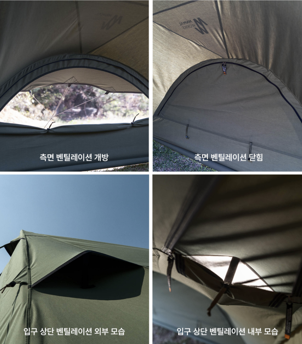 T/C RIPSTOP 280 GMS:棉與聚酯纖維混紡材質,採用棉與聚酯混紡的 T/C 材質,減少結露現象,透氣性極佳,營造舒適且宜人的帳篷內部環境。Superposition Solo 採用 T/C 棉布材質,並經防潑水塗層處理,即使遇到小雨也能安心使用。因極端氣候與天候異常,若出發前預計出現強降雨或豪雨等情況,建議避免使用。