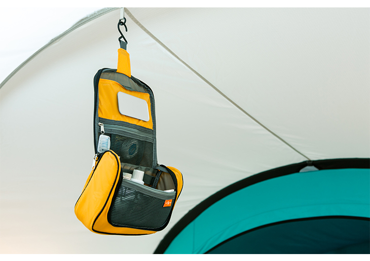 Washing Tool Organizer 旅用盥洗包,有多個口袋、掛勾、鏡子,使用防水 210D 抗撕裂面料製成,好分類、好整理,是不可或缺的旅行好夥伴。