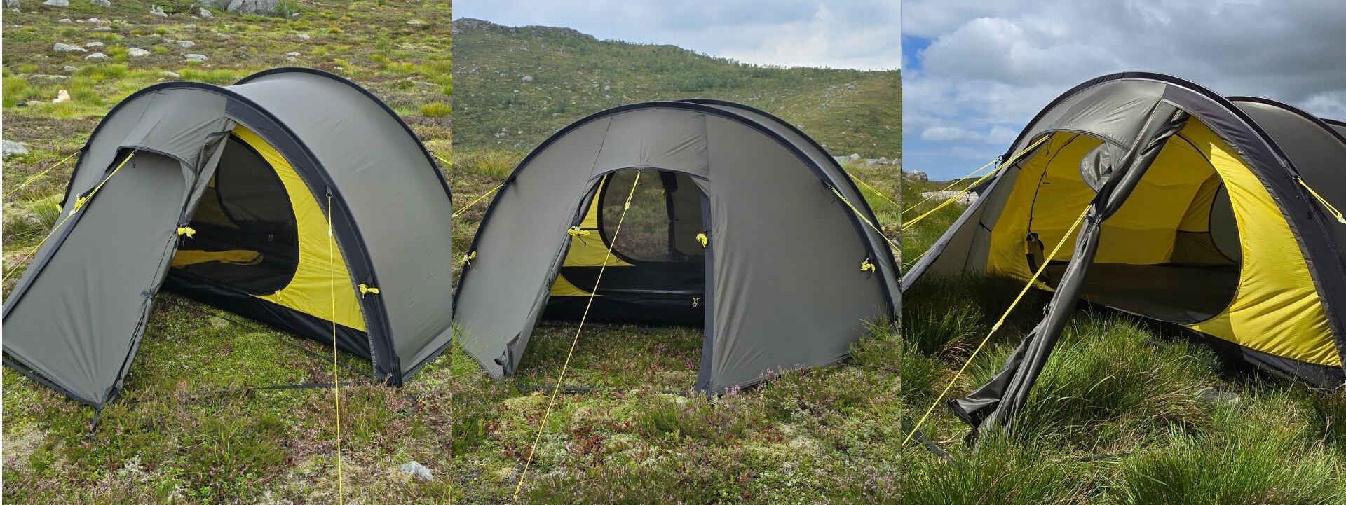 Ly 1 特別設計了兩個大型通風口,分別位於帳篷的兩端。此外,您還可以靈活利用四個入口來進一步增強空氣流通。頂部的兩個通風口同時兼具雨棚功能,即使在入口敞開的情況下也能有效防雨。這樣的設計能讓您在帳篷內保持乾燥與舒適,為探險提供最佳支持