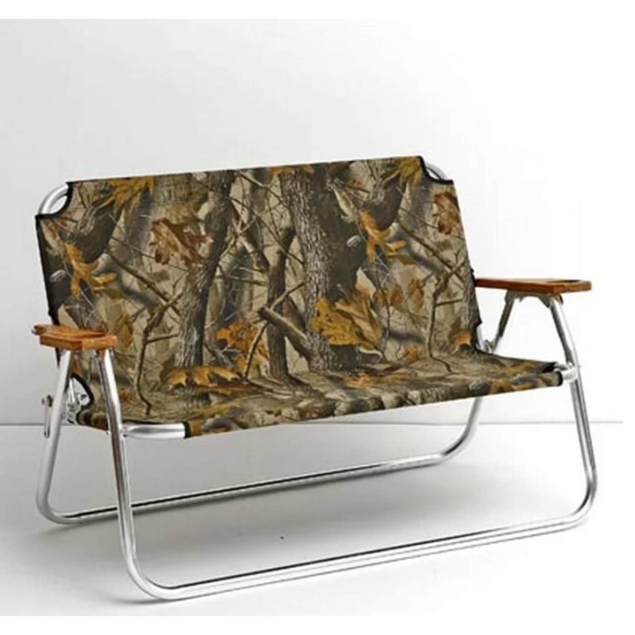 一張可以輕鬆折疊、適合居家戶外、重量輕又有設計感的鋁製雙人椅,大小剛好可以坐一對夫婦或父母與子女,不論你在陽台上或在花園裡,都能自在享受舒適。 扶手使用壓縮的雪松木,貼心的杯架設計,座椅布是由聚酯尼龍製程, 具有耐久性和耐候性。