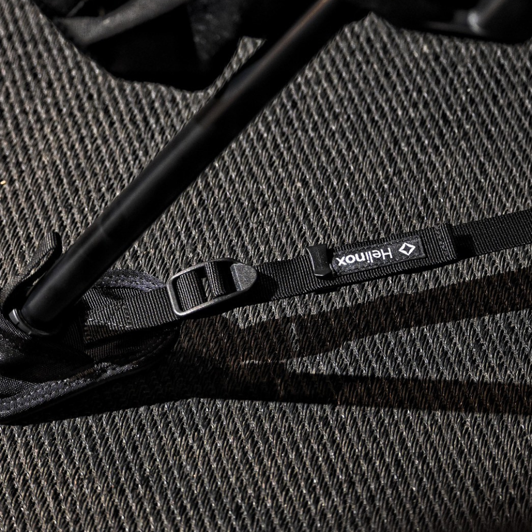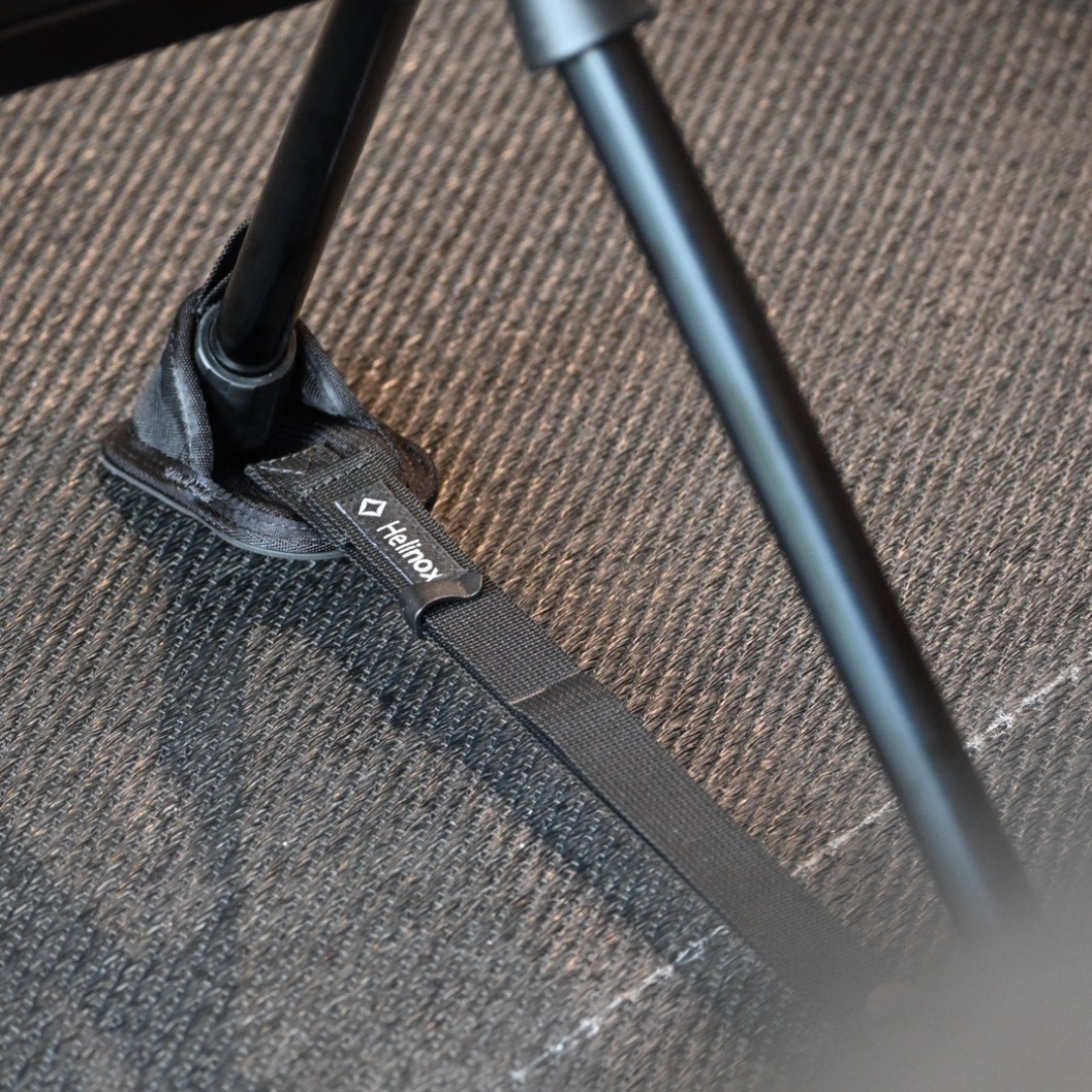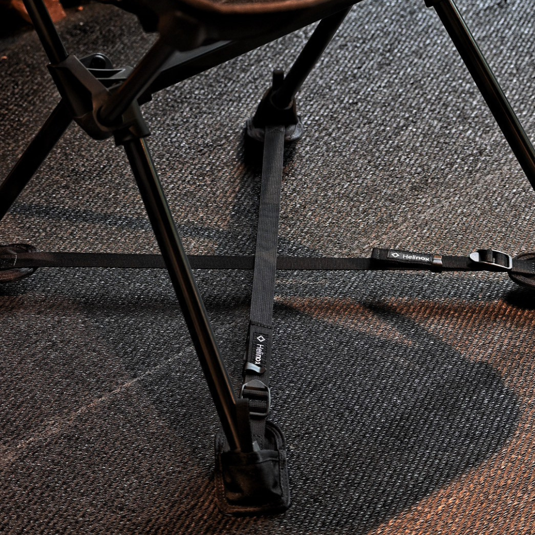 讓裝備保持穩固是 Ground Strap 的核心特點,希望透過增加與地面的接觸面積,防止桌椅在不平整的地面上傾倒。其可調節的設計適用於所有的 Helinox 椅子與桌子。輕巧且攜帶方便。