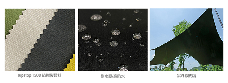 材質:天幕帳布150D P/ Rip DTY PD WR 黑色顏料 60"