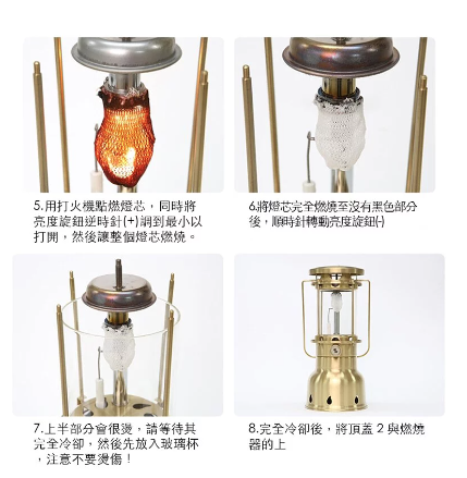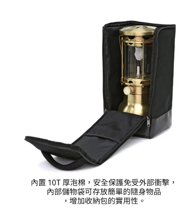 有可調節光亮的旋鈕,使用高山瓦斯罐,不需要使用煤油。本產品配有專用收納袋,由高密度2400D 製成,內置 5 毫米厚的泡綿保護隔層,以安全地保護產品免受外部衝擊。